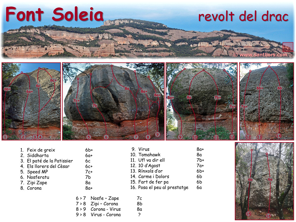 | 8 | Corona | 8a+ | JM. Miquel, Pau Miquel | | parabolts | Reequipada. Variant Corona-Virus, 8a un parabolt addicional |