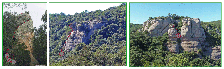 A l'est de la carena del pagès, per on transita el sobre freqüentat camí que uneix la Mola amb el Montcau, podem trobar uns cingles discrets ocults entre el bosc, on hi ha dues agulles singulars; el Moniato i l'agulla de Tanca.