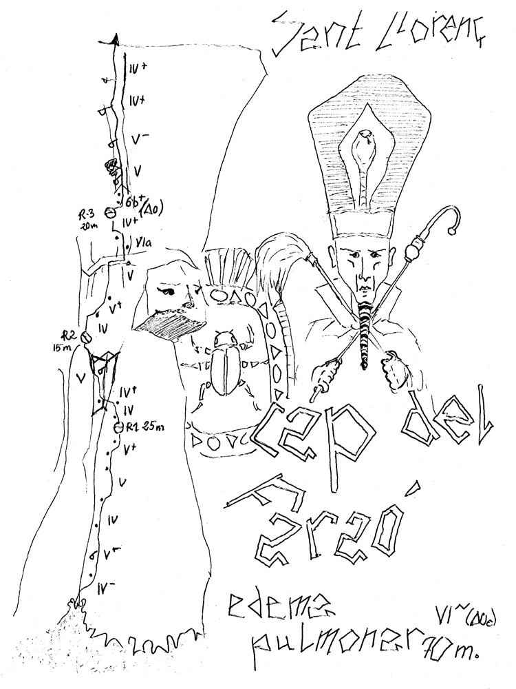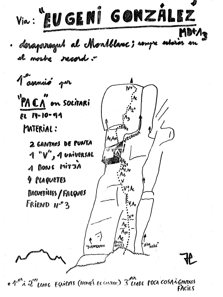 4 | Edema pulmonar | 6b+ | Florencio Sánchez, Agustín Damaso, Josep Antoni Díaz, Manolo González, Rafa Membrives, Toni Membrives | 1986 | burins | Via oberta en diferents atacs. Equipament molt envellit. |