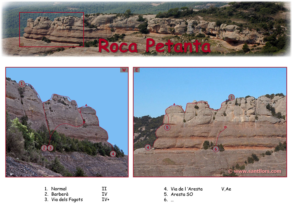 La Roca Petanta es troba a l’extrem de la cinglera de Sescorts i forma un afilat morral de roca situat en un privilegiat mirador sobre la canal de l’Abella.