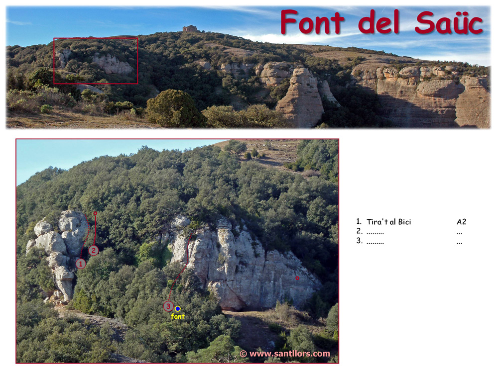 Als petits cingles que envolten la Font del Saüc trobem un reduït nombre de vies, força anecdòtiques, però que són les darreres que es poden escalar, d’acord a la normativa actual, en aquest recorregut cap a l’est pel tercer pis de la Mola.