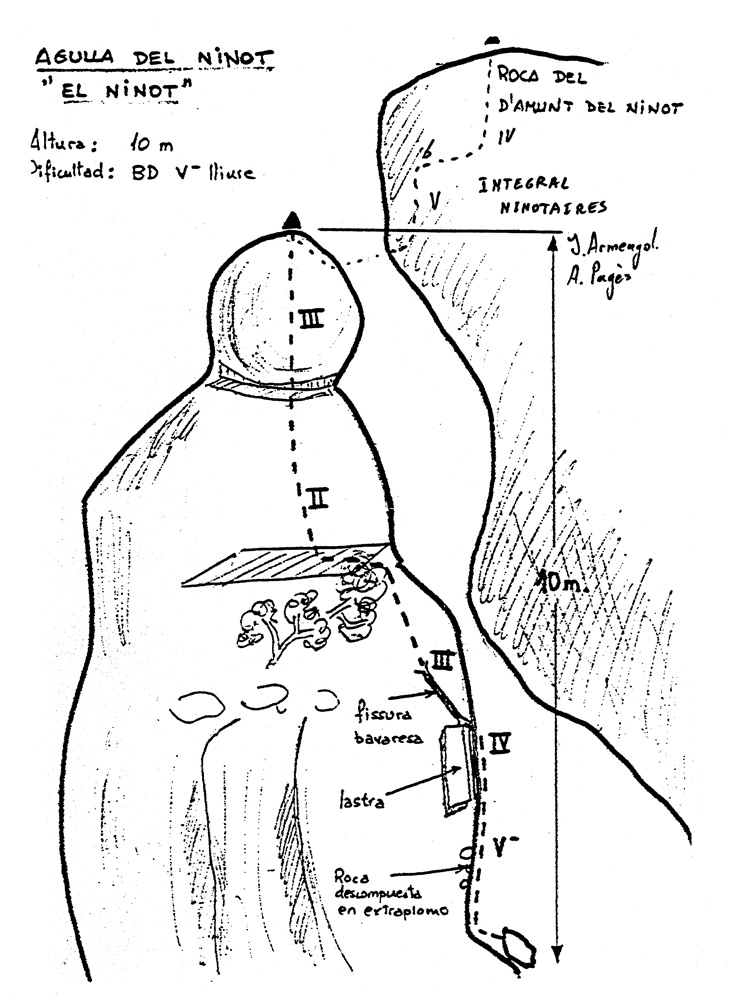 L'agulla del Ninot i el conjunt de roques que l'envolten es troba a la capçalera de la Canal de la Pedrera, una vall poc transitada discretament oculta al vessant nord del morro de Sescorts. Al seu altre vessant hi destaca la cinglera sud de la Pedrera, perfectament arrenglerada que malgrat comptar amb bona roca no coneixem de l'existència de cap via d'escalada.